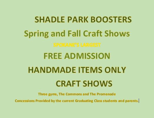 Please follow us on Facebook under: Shadle Park Boosters AND Shadle Park Booster Craft Show for updates and announcements and check our website www.shadleparkboosters.com for all of our fundraising events.